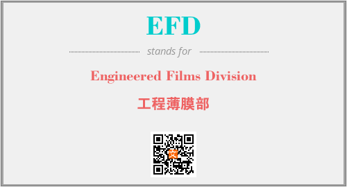 上述内容是“Engineered Films Division”作为“EFD”的缩写,解释为“工程薄膜部”时的信息,以及英文缩略词EFD所代表的英文单词,其对应的中文拼音、详细解释以及在英文中的流行度和相关分类、应用领域及应用示例等。