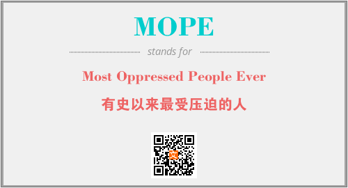 以上为Most Oppressed People Ever英文缩略词MOPE的中文解释,以及该英文缩写在英语的流行度、分类和应用领域方面的信息。
