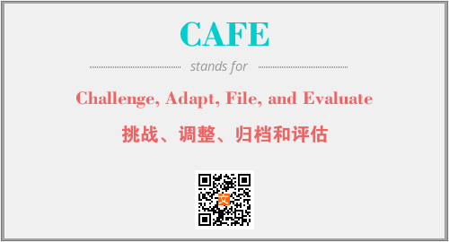 以上为Challenge, Adapt, File, and Evaluate英文缩略词CAFE的中文解释,以及该英文缩写在英语的流行度、分类和应用领域方面的信息。