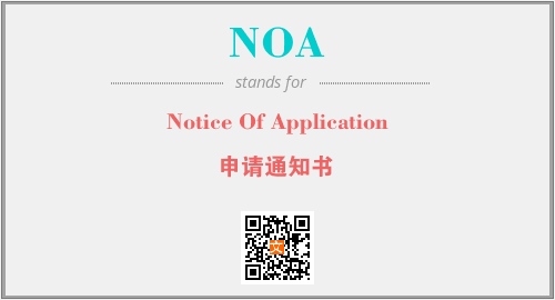 上述内容是“Notice Of Application”作为“NOA”的缩写,解释为“申请通知书”时的信息,以及英文缩略词NOA所代表的英文单词,其对应的中文拼音、详细解释以及在英文中的流行度和相关分类、应用领域及应用示例等。
