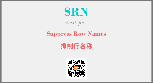英文缩略词“SRN”经常作为“Suppress Row Names”的英文缩写来使用,中文表示:“抑制行名称”。本文将详细介绍英文缩写词SRN所代表英文单词,其对应的中文拼音、详细解释以及在英语中的流行度。此外,还有关于缩略词SRN的分类、应用领域及相关应用示例等。