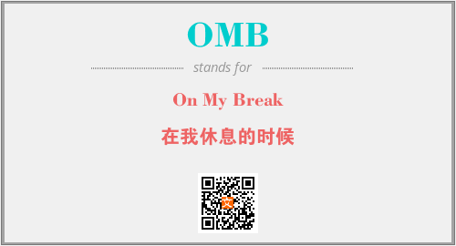 英文缩略词“OMB”经常作为“On My Break”的英文缩写来使用,中文表示:“在我休息的时候”。本文将详细介绍英文缩写词OMB所代表英文单词,其对应的中文拼音、详细解释以及在英语中的流行度。此外,还有关于缩略词OMB的分类、应用领域及相关应用示例等。