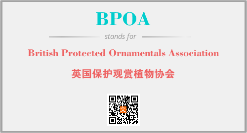 以上为British Protected Ornamentals Association英文缩略词BPOA的中文解释,以及该英文缩写在英语的流行度、分类和应用领域方面的信息。