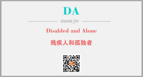 上述内容是“Disabled and Alone”作为“DA”的缩写,解释为“残疾人和孤独者”时的信息,以及英文缩略词DA所代表的英文单词,其对应的中文拼音、详细解释以及在英文中的流行度和相关分类、应用领域及应用示例等。