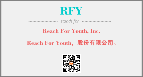 上述内容是“Reach For Youth, Inc.”作为“RFY”的缩写,解释为“Reach For Youth,股份有限公司。”时的信息,以及英文缩略词RFY所代表的英文单词,其对应的中文拼音、详细解释以及在英文中的流行度和相关分类、应用领域及应用示例等。