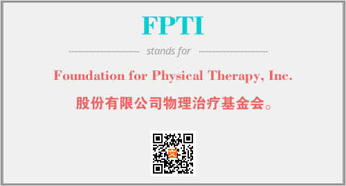 上述内容是“Foundation for Physical Therapy, Inc.”作为“FPTI”的缩写,解释为“股份有限公司物理治疗基金会。”时的信息,以及英文缩略词FPTI所代表的英文单词,其对应的中文拼音、详细解释以及在英文中的流行度和相关分类、应用领域及应用示例等。