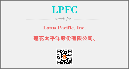 上述内容是“Lotus Pacific, Inc.”作为“LPFC”的缩写,解释为“莲花太平洋股份有限公司。”时的信息,以及英文缩略词LPFC所代表的英文单词,其对应的中文拼音、详细解释以及在英文中的流行度和相关分类、应用领域及应用示例等。