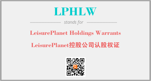 上述内容是“LeisurePlanet Holdings Warrants”作为“LPHLW”的缩写,解释为“LeisurePlanet控股公司认股权证”时的信息,以及英文缩略词LPHLW所代表的英文单词,其对应的中文拼音、详细解释以及在英文中的流行度和相关分类、应用领域及应用示例等。