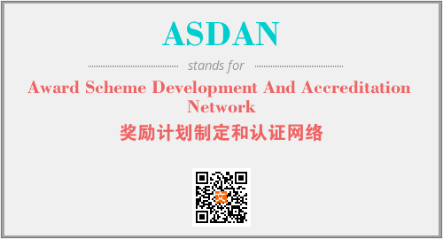 上述内容是“Award Scheme Development And Accreditation Network”作为“ASDAN”的缩写,解释为“奖励计划制定和认证网络”时的信息,以及英文缩略词ASDAN所代表的英文单词,其对应的中文拼音、详细解释以及在英文中的流行度和相关分类、应用领域及应用示例等。