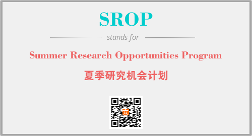 上述内容是“Summer Research Opportunities Program”作为“SROP”的缩写,解释为“夏季研究机会计划”时的信息,以及英文缩略词SROP所代表的英文单词,其对应的中文拼音、详细解释以及在英文中的流行度和相关分类、应用领域及应用示例等。
