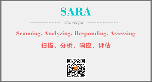 上述内容是“Scanning, Analyzing, Responding, Assessing”作为“SARA”的缩写,解释为“扫描、分析、响应、评估”时的信息,以及英文缩略词SARA所代表的英文单词,其对应的中文拼音、详细解释以及在英文中的流行度和相关分类、应用领域及应用示例等。