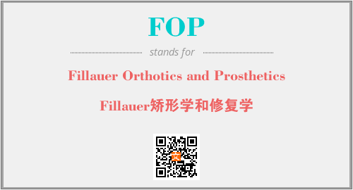 上述内容是“Fillauer Orthotics and Prosthetics”作为“FOP”的缩写,解释为“Fillauer矫形学和修复学”时的信息,以及英文缩略词FOP所代表的英文单词,其对应的中文拼音、详细解释以及在英文中的流行度和相关分类、应用领域及应用示例等。