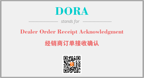 上述内容是“Dealer Order Receipt Acknowledgment”作为“DORA”的缩写,解释为“经销商订单接收确认”时的信息,以及英文缩略词DORA所代表的英文单词,其对应的中文拼音、详细解释以及在英文中的流行度和相关分类、应用领域及应用示例等。