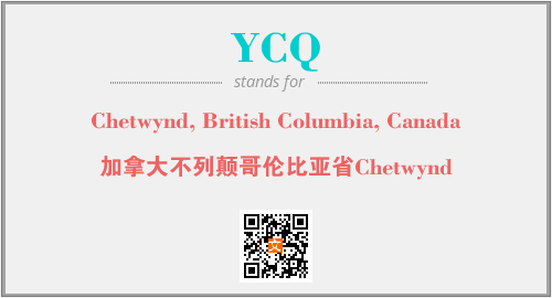 上述内容是“Chetwynd, British Columbia, Canada”作为“YCQ”的缩写,解释为“加拿大不列颠哥伦比亚省Chetwynd”时的信息,以及英文缩略词YCQ所代表的英文单词,其对应的中文拼音、详细解释以及在英文中的流行度和相关分类、应用领域及应用示例等。