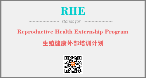 英文缩略词“RHE”经常作为“Reproductive Health Externship Program”的英文缩写来使用,中文表示:“生殖健康外部培训计划”。本文将详细介绍英文缩写词RHE所代表英文单词,其对应的中文拼音、详细解释以及在英语中的流行度。此外,还有关于缩略词RHE的分类、应用领域及相关应用示例等。