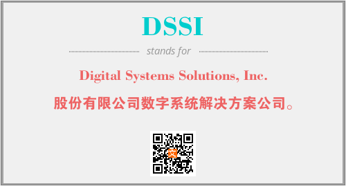 上述内容是“Digital Systems Solutions, Inc.”作为“DSSI”的缩写,解释为“股份有限公司数字系统解决方案公司。”时的信息,以及英文缩略词DSSI所代表的英文单词,其对应的中文拼音、详细解释以及在英文中的流行度和相关分类、应用领域及应用示例等。