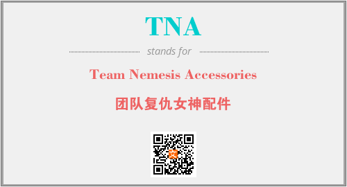 英文缩略词“TNA”经常作为“Team Nemesis Accessories”的英文缩写来使用,中文表示:“团队复仇女神配件”。本文将详细介绍英文缩写词TNA所代表英文单词,其对应的中文拼音、详细解释以及在英语中的流行度。此外,还有关于缩略词TNA的分类、应用领域及相关应用示例等。