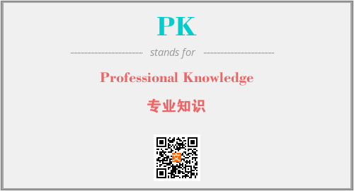 英文缩略词“PK”经常作为“Professional Knowledge”的英文缩写来使用,中文表示:“专业知识”。本文将详细介绍英文缩写词PK所代表英文单词,其对应的中文拼音、详细解释以及在英语中的流行度。此外,还有关于缩略词PK的分类、应用领域及相关应用示例等。