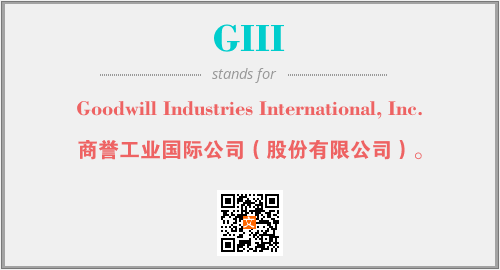 上述内容是“Goodwill Industries International, Inc.”作为“GIII”的缩写,解释为“商誉工业国际公司(股份有限公司)。”时的信息,以及英文缩略词GIII所代表的英文单词,其对应的中文拼音、详细解释以及在英文中的流行度和相关分类、应用领域及应用示例等。