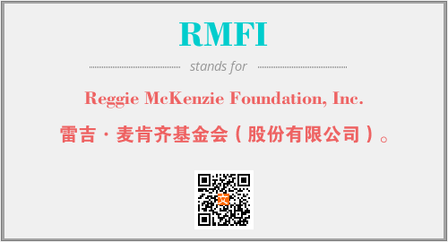 上述内容是“Reggie McKenzie Foundation, Inc.”作为“RMFI”的缩写,解释为“雷吉·麦肯齐基金会(股份有限公司)。”时的信息,以及英文缩略词RMFI所代表的英文单词,其对应的中文拼音、详细解释以及在英文中的流行度和相关分类、应用领域及应用示例等。
