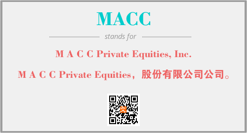 上述内容是“M A C C Private Equities, Inc.”作为“MACC”的缩写,解释为“M A C C Private Equities,股份有限公司公司。”时的信息,以及英文缩略词MACC所代表的英文单词,其对应的中文拼音、详细解释以及在英文中的流行度和相关分类、应用领域及应用示例等。