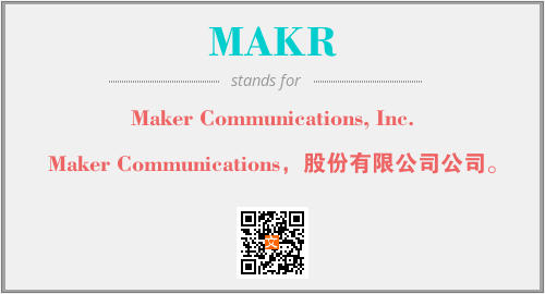 上述内容是“Maker Communications, Inc.”作为“MAKR”的缩写,解释为“Maker Communications,股份有限公司公司。”时的信息,以及英文缩略词MAKR所代表的英文单词,其对应的中文拼音、详细解释以及在英文中的流行度和相关分类、应用领域及应用示例等。