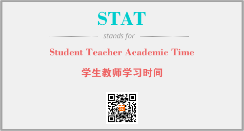 上述内容是“Student Teacher Academic Time”作为“STAT”的缩写,解释为“学生教师学习时间”时的信息,以及英文缩略词STAT所代表的英文单词,其对应的中文拼音、详细解释以及在英文中的流行度和相关分类、应用领域及应用示例等。