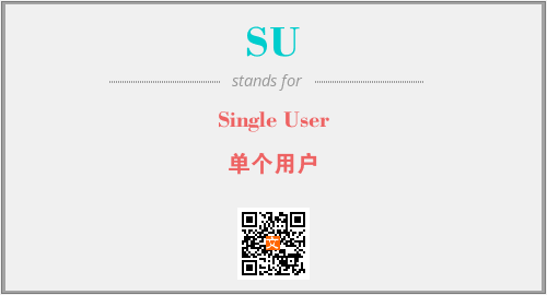 英文缩略词“SU”经常作为“Single User”的英文缩写来使用,中文表示:“单个用户”。本文将详细介绍英文缩写词SU所代表英文单词,其对应的中文拼音、详细解释以及在英语中的流行度。此外,还有关于缩略词SU的分类、应用领域及相关应用示例等。