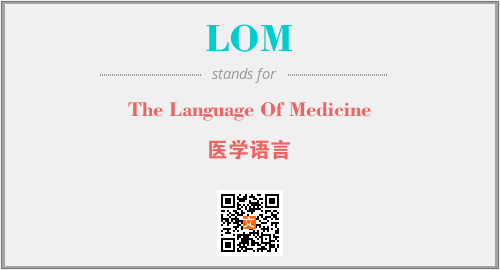 上述内容是“The Language Of Medicine”作为“LOM”的缩写,解释为“医学语言”时的信息,以及英文缩略词LOM所代表的英文单词,其对应的中文拼音、详细解释以及在英文中的流行度和相关分类、应用领域及应用示例等。