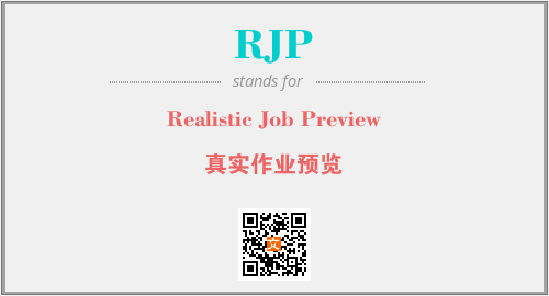 英文缩略词“RJP”经常作为“Realistic Job Preview”的英文缩写来使用,中文表示:“真实作业预览”。本文将详细介绍英文缩写词RJP所代表英文单词,其对应的中文拼音、详细解释以及在英语中的流行度。此外,还有关于缩略词RJP的分类、应用领域及相关应用示例等。