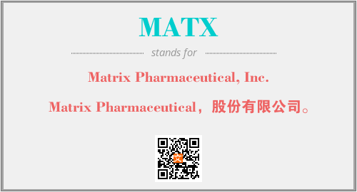 上述内容是“Matrix Pharmaceutical, Inc.”作为“MATX”的缩写,解释为“Matrix Pharmaceutical,股份有限公司。”时的信息,以及英文缩略词MATX所代表的英文单词,其对应的中文拼音、详细解释以及在英文中的流行度和相关分类、应用领域及应用示例等。