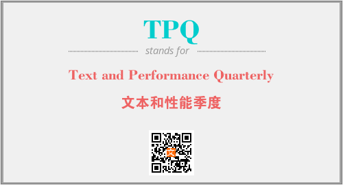 以上为Text and Performance Quarterly英文缩略词TPQ的中文解释,以及该英文缩写在英语的流行度、分类和应用领域方面的信息。