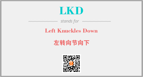 英文缩略词“LKD”经常作为“Left Knuckles Down”的英文缩写来使用,中文表示:“左转向节向下”。本文将详细介绍英文缩写词LKD所代表英文单词,其对应的中文拼音、详细解释以及在英语中的流行度。此外,还有关于缩略词LKD的分类、应用领域及相关应用示例等。
