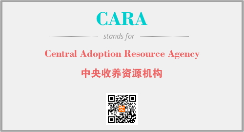 上述内容是“Central Adoption Resource Agency”作为“CARA”的缩写,解释为“中央收养资源机构”时的信息,以及英文缩略词CARA所代表的英文单词,其对应的中文拼音、详细解释以及在英文中的流行度和相关分类、应用领域及应用示例等。