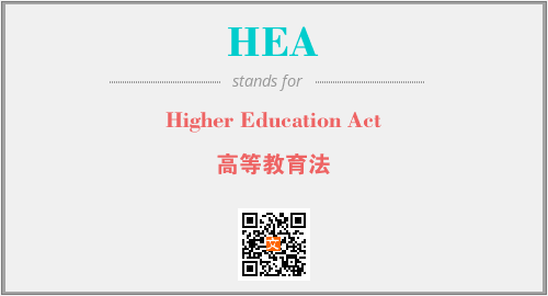英文缩略词“HEA”经常作为“Higher Education Act”的英文缩写来使用,中文表示:“高等教育法”。本文将详细介绍英文缩写词HEA所代表英文单词,其对应的中文拼音、详细解释以及在英语中的流行度。此外,还有关于缩略词HEA的分类、应用领域及相关应用示例等。