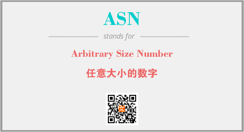 英文缩略词“ASN”经常作为“Arbitrary Size Number”的英文缩写来使用,中文表示:“任意大小的数字”。本文将详细介绍英文缩写词ASN所代表英文单词,其对应的中文拼音、详细解释以及在英语中的流行度。此外,还有关于缩略词ASN的分类、应用领域及相关应用示例等。