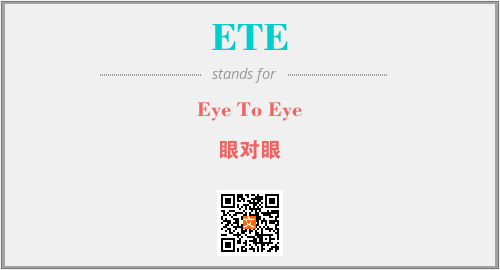 上述内容是“Eye To Eye”作为“ETE”的缩写,解释为“眼对眼”时的信息,以及英文缩略词ETE所代表的英文单词,其对应的中文拼音、详细解释以及在英文中的流行度和相关分类、应用领域及应用示例等。