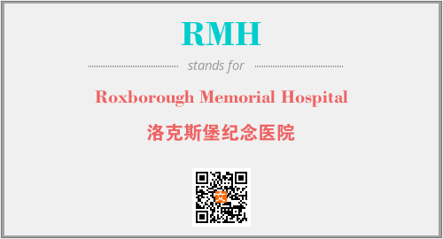 上述内容是“Roxborough Memorial Hospital”作为“RMH”的缩写,解释为“洛克斯堡纪念医院”时的信息,以及英文缩略词RMH所代表的英文单词,其对应的中文拼音、详细解释以及在英文中的流行度和相关分类、应用领域及应用示例等。