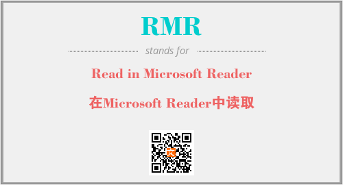 上述内容是“Read in Microsoft Reader”作为“RMR”的缩写,解释为“在Microsoft Reader中读取”时的信息,以及英文缩略词RMR所代表的英文单词,其对应的中文拼音、详细解释以及在英文中的流行度和相关分类、应用领域及应用示例等。