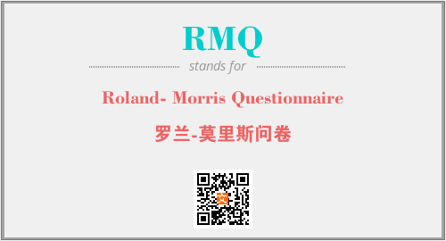 英文缩略词“RMQ”经常作为“Roland- Morris Questionnaire”的英文缩写来使用,中文表示:“罗兰-莫里斯问卷”。本文将详细介绍英文缩写词RMQ所代表英文单词,其对应的中文拼音、详细解释以及在英语中的流行度。此外,还有关于缩略词RMQ的分类、应用领域及相关应用示例等。