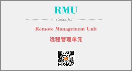 英文缩略词“RMU”经常作为“Remote Management Unit”的英文缩写来使用,中文表示:“远程管理单元”。本文将详细介绍英文缩写词RMU所代表英文单词,其对应的中文拼音、详细解释以及在英语中的流行度。此外,还有关于缩略词RMU的分类、应用领域及相关应用示例等。