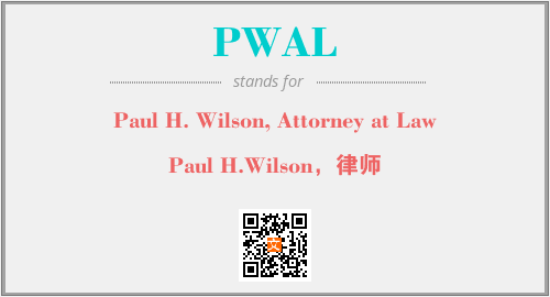 上述内容是“Paul H. Wilson, Attorney at Law”作为“PWAL”的缩写,解释为“Paul H.Wilson,律师”时的信息,以及英文缩略词PWAL所代表的英文单词,其对应的中文拼音、详细解释以及在英文中的流行度和相关分类、应用领域及应用示例等。