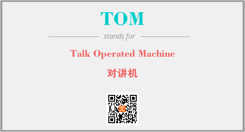 英文缩略词“TOM”经常作为“Talk Operated Machine”的英文缩写来使用,中文表示:“对讲机”。本文将详细介绍英文缩写词TOM所代表英文单词,其对应的中文拼音、详细解释以及在英语中的流行度。此外,还有关于缩略词TOM的分类、应用领域及相关应用示例等。