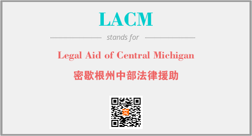 上述内容是“Legal Aid of Central Michigan”作为“LACM”的缩写,解释为“密歇根州中部法律援助”时的信息,以及英文缩略词LACM所代表的英文单词,其对应的中文拼音、详细解释以及在英文中的流行度和相关分类、应用领域及应用示例等。
