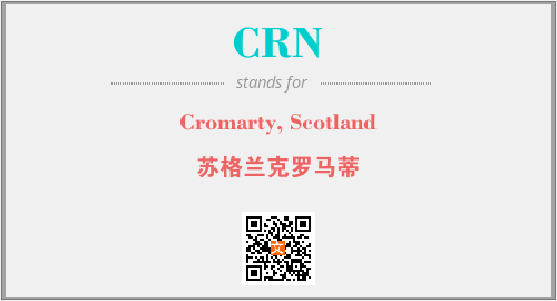 上述内容是“Cromarty, Scotland”作为“CRN”的缩写,解释为“苏格兰克罗马蒂”时的信息,以及英文缩略词CRN所代表的英文单词,其对应的中文拼音、详细解释以及在英文中的流行度和相关分类、应用领域及应用示例等。