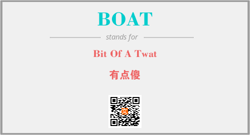英文缩略词“BOAT”经常作为“Bit Of A Twat”的英文缩写来使用,中文表示:“有点傻”。本文将详细介绍英文缩写词BOAT所代表英文单词,其对应的中文拼音、详细解释以及在英语中的流行度。此外,还有关于缩略词BOAT的分类、应用领域及相关应用示例等。