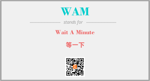 英文缩略词“WAM”经常作为“Wait A Minute”的英文缩写来使用,中文表示:“等一下”。本文将详细介绍英文缩写词WAM所代表英文单词,其对应的中文拼音、详细解释以及在英语中的流行度。此外,还有关于缩略词WAM的分类、应用领域及相关应用示例等。