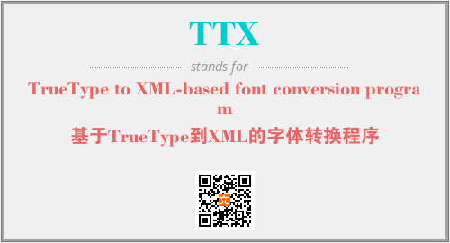 英文缩略词“TTX”经常作为“TrueType to XML-based font conversion program”的英文缩写来使用,中文表示:“基于TrueType到XML的字体转换程序”。本文将详细介绍英文缩写词TTX所代表英文单词,其对应的中文拼音、详细解释以及在英语中的流行度。此外,还有关于缩略词TTX的分类、应用领域及相关应用示例等。
