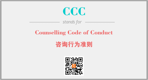上述内容是“Counselling Code of Conduct”作为“CCC”的缩写,解释为“咨询行为准则”时的信息,以及英文缩略词CCC所代表的英文单词,其对应的中文拼音、详细解释以及在英文中的流行度和相关分类、应用领域及应用示例等。