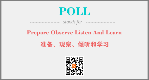 以上为Prepare Observe Listen And Learn英文缩略词POLL的中文解释,以及该英文缩写在英语的流行度、分类和应用领域方面的信息。